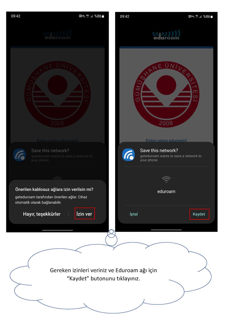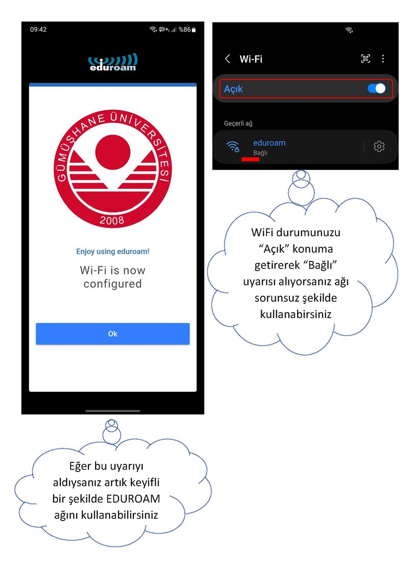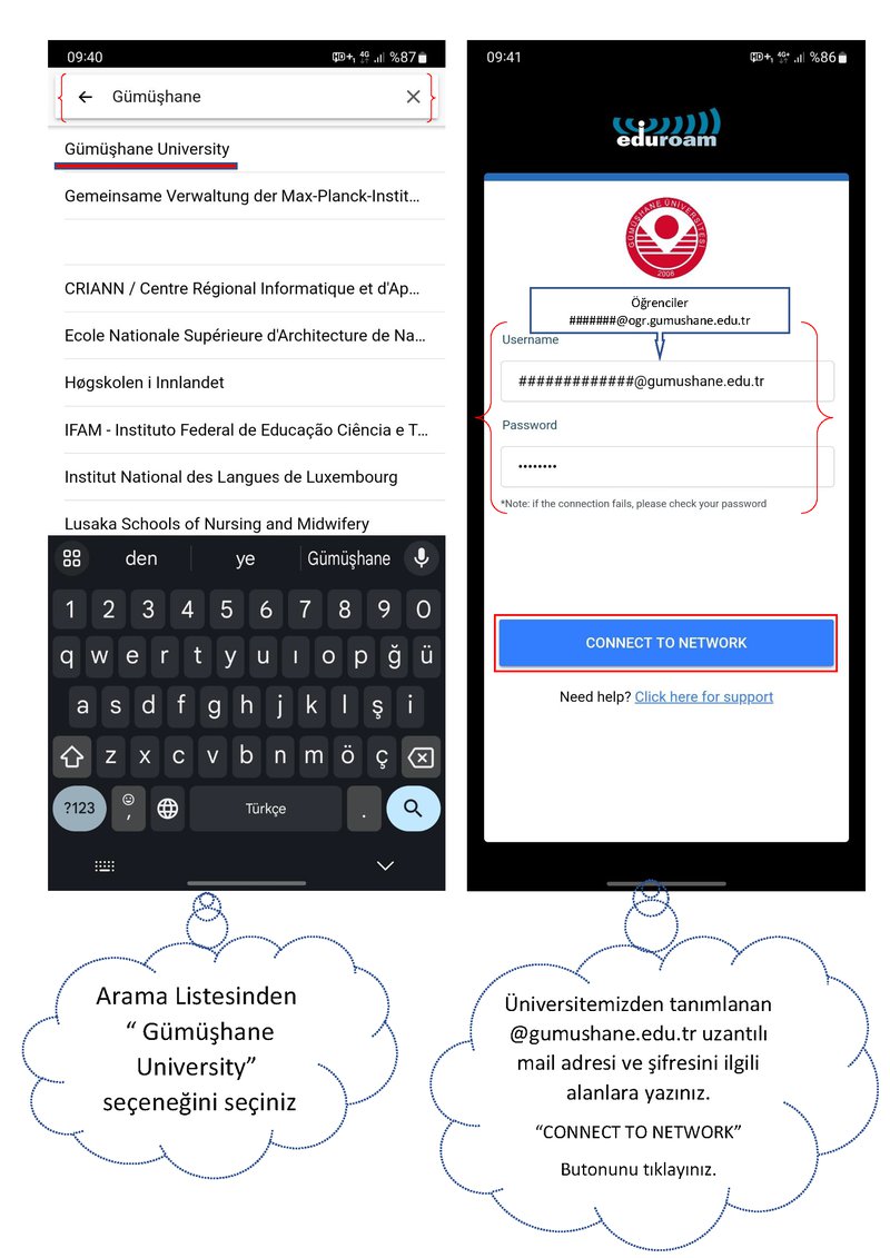 - Eduroam ağına bağlanmak için Üniversitemiz tarafından adınıza tanımlı mail adresiniz olması gerekir.